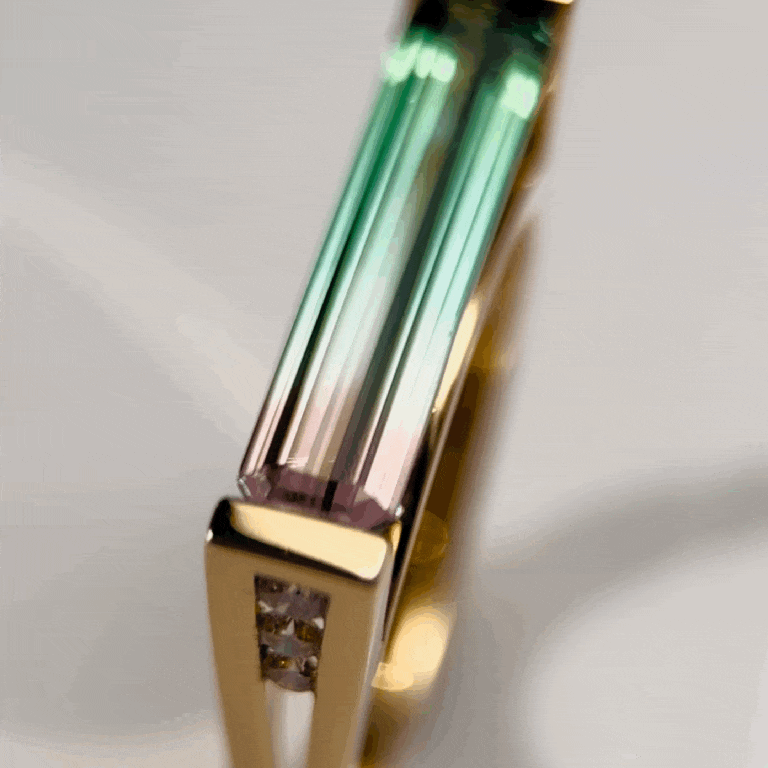 Bague en or 18 carats avec tourmaline naturelle couleur pastèque et diamants
