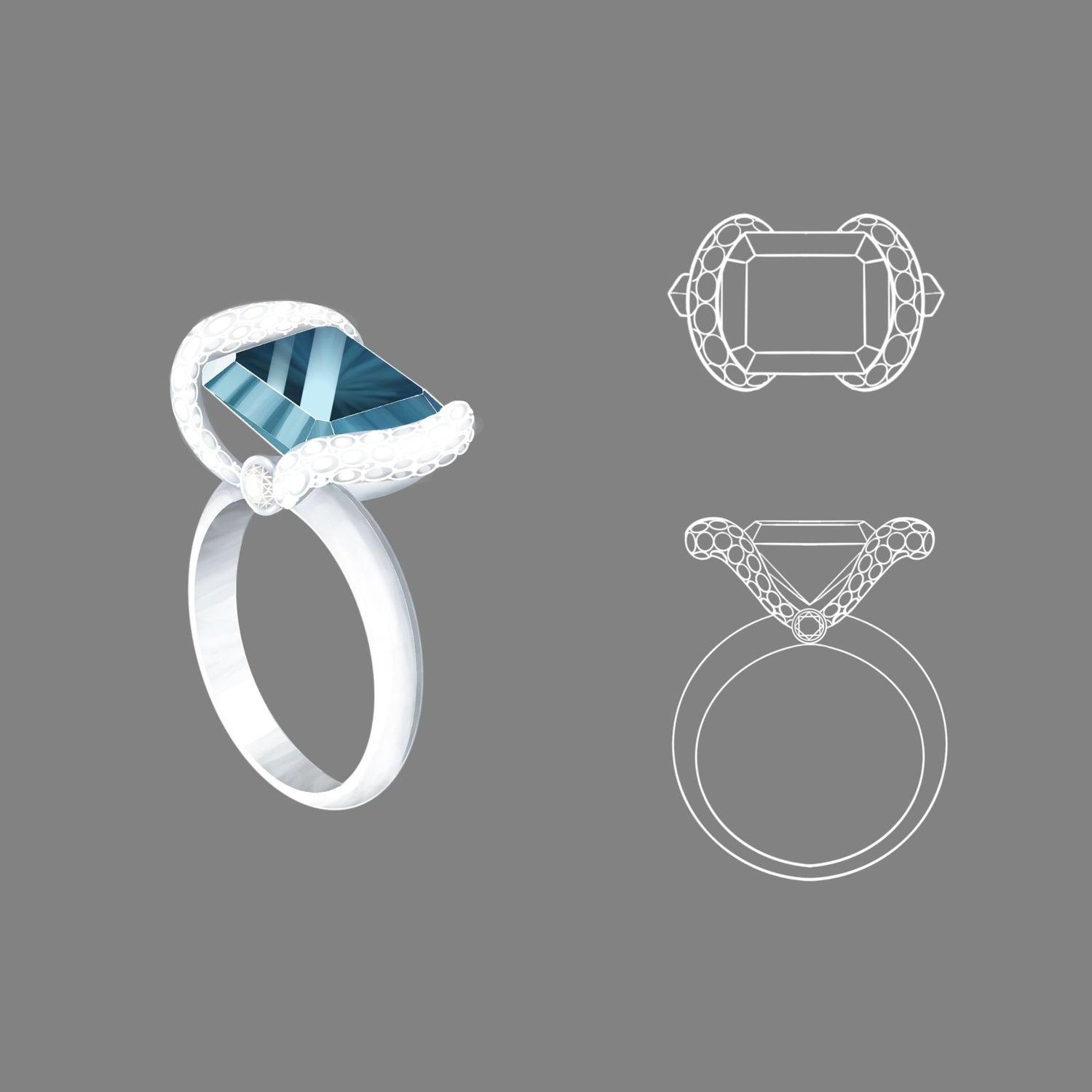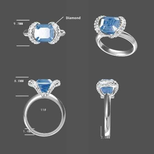 A female customer approached us with a customization request, seeking to create an eye-catching ring. As a cocktail ring, the main stone of the ring needed to have a strong presence. The design style of the ring needed to be simple yet sophisticated, showcasing the gemstone from all angles.