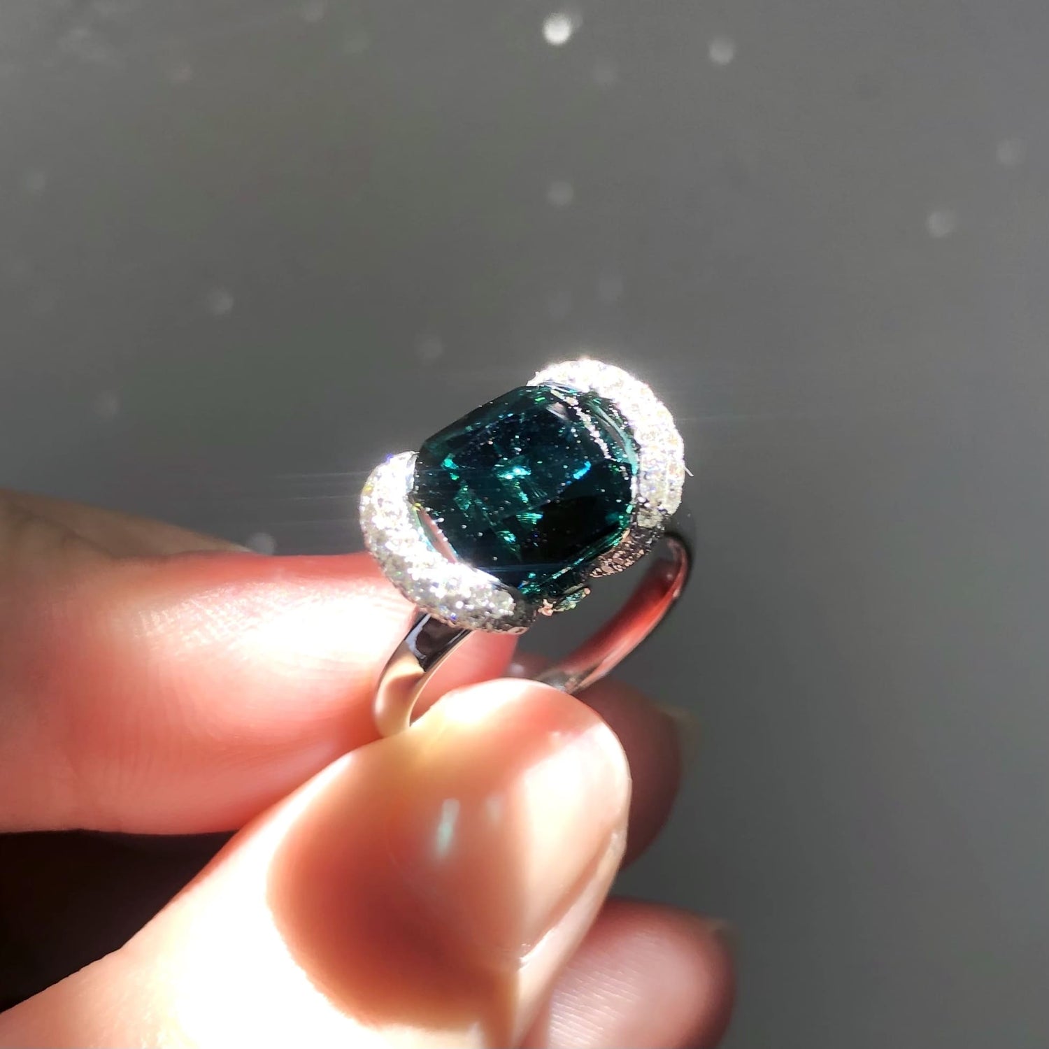 Considering practicality, we recommended several design options to determine her preferred style. Taking into account budget constraints, color preferences, and various considerations, we ultimately recommended a nearly 5ct Lagoon Blue tourmaline, sourced from Afghanistan.