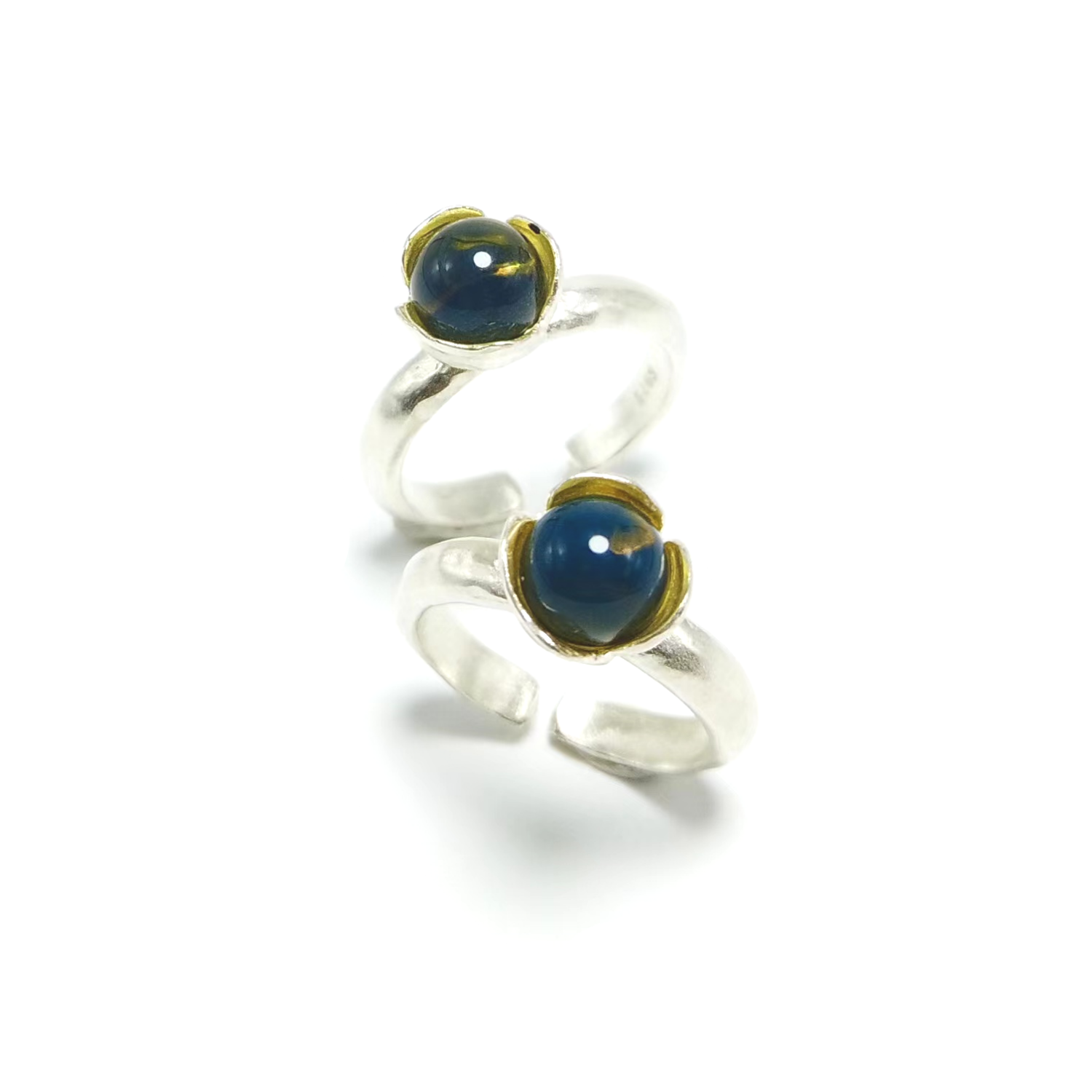 Through this ring, we hope to bring you a refreshing and natural feeling. The design of the tulip perfectly complements the blue amber bead, becoming a blooming flower at your fingertips. The blue amber beads used in the ring are carefully selected, presenting a gentle sky-blue color under sunlight. The refracted colors of the blue amber beads change with variations in light and angle.